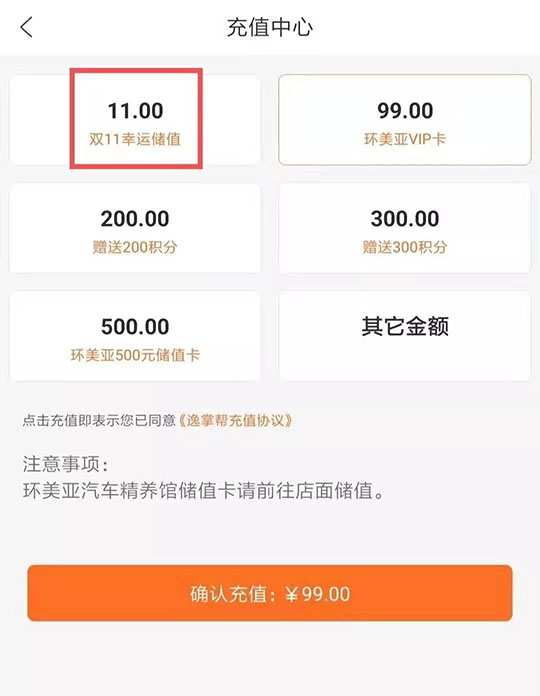 3、凡參與活動(dòng)充值未中獎(jiǎng)的用戶即可到環(huán)美亞門(mén)店進(jìn)行優(yōu)惠洗車(chē)1次(選擇到店洗車(chē)有效期15),如不選擇洗車(chē)可加價(jià)選擇店內(nèi)其他服務(wù)項(xiàng)目。