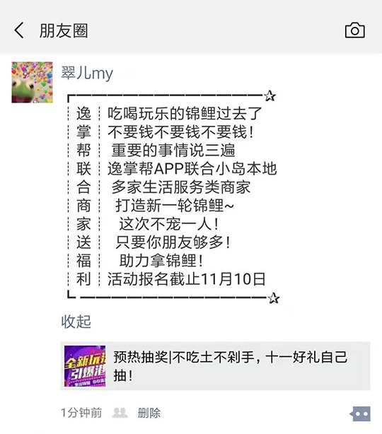 朋友圈轉(zhuǎn)發(fā)推文,再贈(zèng)送門(mén)店抽獎(jiǎng)1次